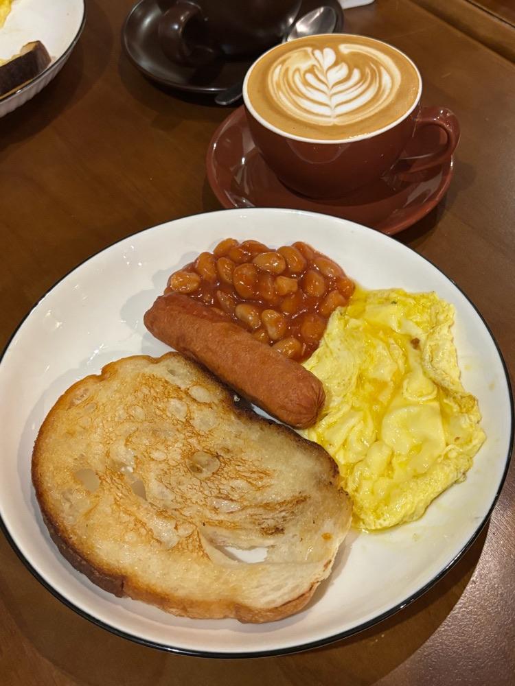 Daily breakfast served with sourdough, omelette, baked beans and sausage. Sourdough is nicely made.