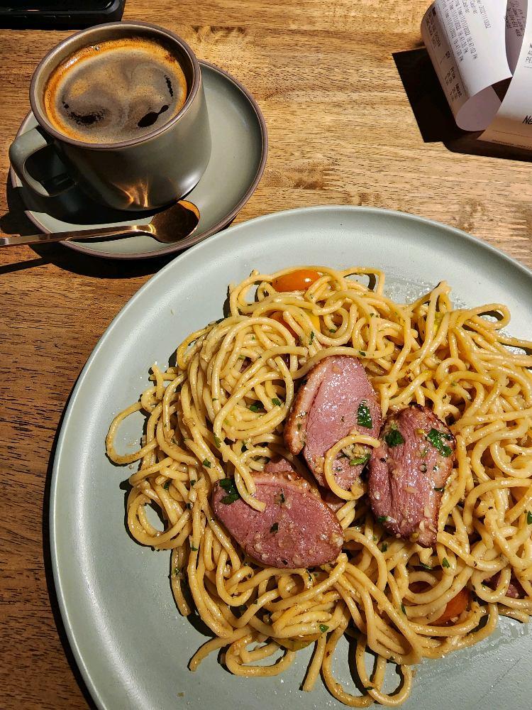 I ordered their aglio olio spaghetti with smoked duck breast, and it was okay. Despite how few pieces of duck breast was shown in the attached photo, there are actually around 10 pieces of meat hidden underneath.