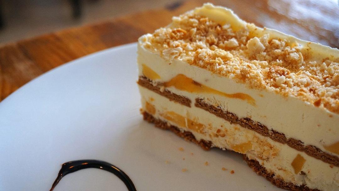 2 layers of Jackfruit chunks with fresh whipped cream sandwiched between thin biscuits.